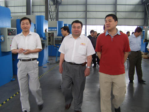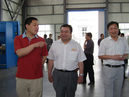 2006年5月26日下午,安徽省機(jī)床工具協(xié)會代表團(tuán)在安徽機(jī)床工具協(xié)會理事長、合肥鍛壓機(jī)床有限公司董事長嚴(yán)建文帶領(lǐng)下,一行數(shù)十人來我公司參觀考察,當(dāng)涂縣委常委、博望鎮(zhèn)黨委書記張清等領(lǐng)導(dǎo)陪同了代表團(tuán)一行??疾熘写韴F(tuán)成員對我公司近年來的快速發(fā)展、產(chǎn)品定位等給予了充分的肯定。